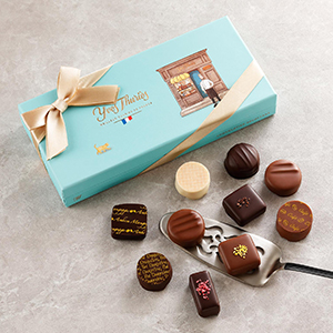 フランス国家最優秀職人章『M.O.F』を世界で唯一、2部門で同時受章(1976年受章)したフランス菓子界の巨匠「イヴ・チュリエス」。国内最大級の自社農園で育った、上品な香りと繊細な味わいのヘーゼルナッツを使用した新作ミルクチョコレート『プラリネ・ドゥ・シュド・ウエスト』など、ひと粒ひと粒丁寧に手掛け、まるで宝石のように輝く『イヴ・チュリエス』のショコラを心ゆくまでお楽しみ下さい。