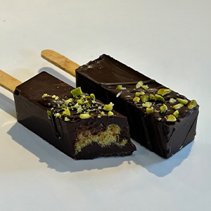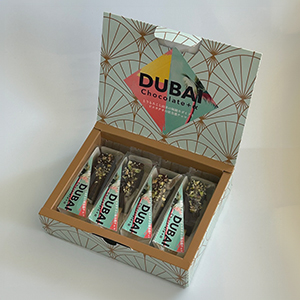 食べきりサイズのスティックドバイチョコ。ザクザク食感トルコ生まれのとうもろこし由来の極細麺“カダイフ”と自家製焼き立てのピスタチオから作るペーストが入ったチョコレートです。チョコの中から溢れ出すピスタチオのグリーンにコーティングされた極細麺のインパクトと美味しさから中東ドバイ発、韓国経由で、2024年にTikTokを中心に日本の若者の間でも話題になっています。