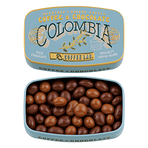コーヒー豆とチョコレートの絶妙な相性にこだわったビーンズチョコレート。2種類のチョコレートでひと粒丸ごとコーティングしました。スタイリッシュなデザイン缶はアフターユースの楽しみも。
