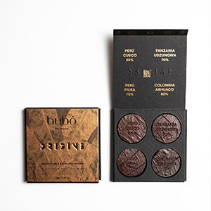 世界の秘境や固有の文化に根ざした4つのカカオ産地を巡るように、シングルオリジンチョコレートの物語を味わえるセット。希少なカカオ4種を厳選し、それぞれが持つ個性豊かな香りや風味を、チャートと見比べながらお楽しみいただけます。デザイナーが実際に産地で見つけたカカオの葉を、パッケージとチョコレートのデザインに施しました。まるで一冊の本を開くように、チョコレートを通して世界を旅するひとときをお楽しみください。CHOCOLATE SCORE CARD(世界チョコレート成績表)にて、2023・2024年の2年連続、サステナブルなチョコレートメーカーに与えられるgood egg award 最高賞を受賞した「ORIGINAL BEANS社」のチョコレートを使用。