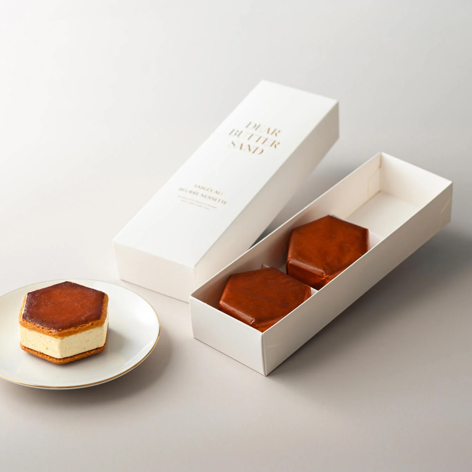 海外産よりも優しく柔らかなニュアンスでありながら、しっかりとした骨格と存在感が印象的。【重みある歯応え。“ガレットブルトンヌ”生地】クッキー生地を使ったバターサンドが一般的ですが、「DEAR BUTTER SAND」は、生地にも歯ごたえのる存在感をだすために、ブルターニュ地方の伝統菓子であるガレットブルトンヌをセレクト。こんがりと焼き目がついて香ばしく、頬張ると、しっかりとした重厚感がありますが、驚くほど軽やかに消えていきます。