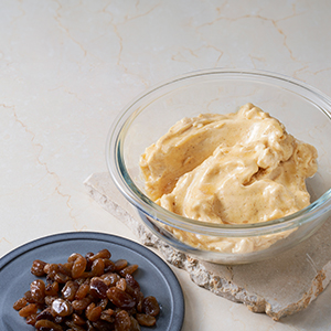 【希少なラム酒を使った、まろやか風味のラムレーズン】川手シェフが10年ほど前に出逢った、沖縄本島北部にある伊江島蒸留所が醸す純日本産のラム酒「イエラム サンタマリア ゴールド」を使用しています。伊江島産サトウキビの搾り汁のみで仕込み、単式蒸留器を使ったアグリコール製法によるもので、この製法によるラム酒は、全世界の総生産量の約3%しかない稀少なもの。オーク樽で熟成することでふくよかな樽香が生まれます。