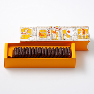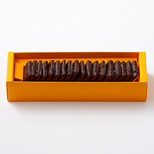 ●詰合せ内容:カカオ片とアーモンドスライス入りショコラヌガティーヌ、ショコラノワールコーティング