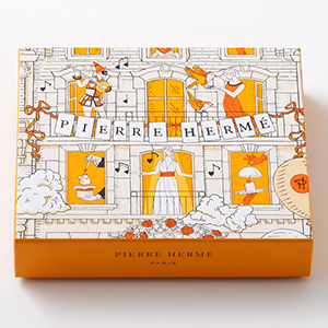 ショコラはピエール・エルメの大好きな素材のひとつ。“パティスリー界のピカソ”と称される彼のショコラには、独特の輝き、まろやかさ、芳香があります。口の中でソフトにとろける上質なショコラに、「ショコラ オ マカロン アンフィニマン プラリネ ピニョン ド セドル」「アンフィニマン プラリネ マイス」が登場。フランス在住のイラストレーター、ジュリー・セールが描くアール・ド・ヴィーヴルに彩られた限定BOXでお届けいたします。
