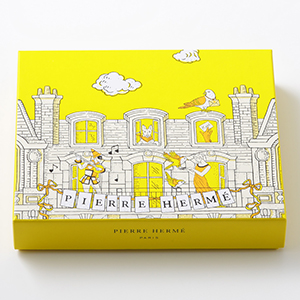 ショコラはピエール・エルメの大好きな素材のひとつ。“パティスリー界のピカソ”と称される彼のショコラには、独特の輝き、まろやかさ、芳香があります。口の中でソフトにとろける上質なショコラに、「アンフィニマン プラリネ マイス」「ショコラ オ レ エ テ マッチャ」が登場。フランス在住のイラストレーター、ジュリー・セールが描くアール・ド・ヴィーヴルに彩られた限定BOXでお届けいたします。