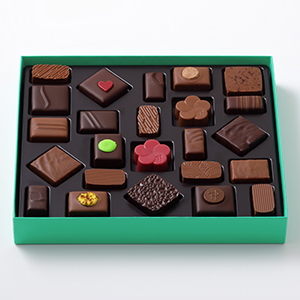 ショコラはピエール・エルメの大好きな素材のひとつ。“パティスリー界のピカソ”と称される彼のショコラには、独特の輝き、まろやかさ、芳香があります。口の中でソフトにとろける上質なショコラに、「アンフィニマン ベリーズ」「ショコラ オ マカロン アンフィニマン プラリネ ピニョン ド セドル」「アンフィニマン プラリネ マイス」「ショコラ オ レ エ テ マッチャ」が登場。フランス在住のイラストレーター、ジュリー・セールが描くアール・ド・ヴィーヴルに彩られた限定BOXでお届けいたします。