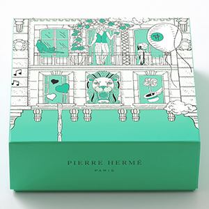 洗練された珠玉のお菓子。バレンタインに合わせて、ブラジル・パイネイラス農園産純正チョコレートに対するオマージュが込められた「アンフィニマン ショコラ パイネイラス」や甘酸っぱいパッションフルーツと印象深いミルクチョコレートの「モガドール」など、チョコレートフレーバーを中心に9種15個を詰め合わせました。イラストレーター、ジュリー・セールによるパリの雰囲気に満ちた夢のようなシーンが描かれた限定BOXでご用意いたします。