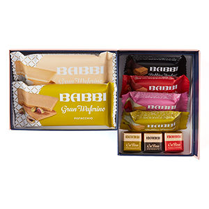 9種のドルチェが楽しめるアソートボックス。定番ウエハース『グランワッフェリーニ』に加え、季節限定チョコレートウエハース『バッビーノ』、クリームをチョコレートで包んだ『クボーン』を詰め合わせました。どれから味わうか迷う楽しさも詰まった、ひと箱で楽しむドルチェの宝石箱です。