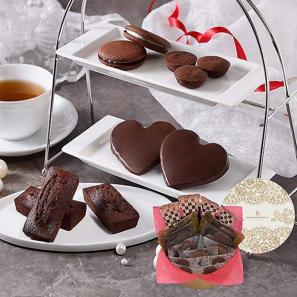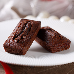 <フィナンシェ・オ・ショコラ>フィナンシェのためだけに開発された特別なチョコレートを使用し、アーモンドやバターの香ばしさの中でもカカオの風味がしっかりと感じられるよう丁寧に設計しました。焼き上げる直前にそっと加えることで、香りがふわりと広がり、ひと口ごとにチョコレートの存在感が際立ちます。繊細な温度管理のもとで仕上げられたチョコレートが、フィナンシェの味わいをより深く引き立てます。