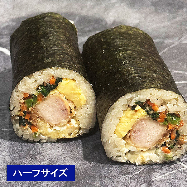 ●内容:海苔、出汁ご飯、ちくわの磯部揚げ、から揚げ、だし卵、ほうれん草胡麻和え、鮭、タルタルソース