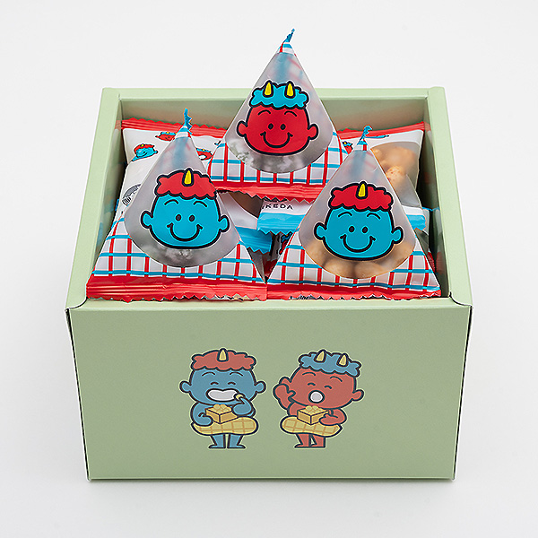 人気の節分限定セットです。小分け包装だから升を持ってそのまま豆まき可能。お子さまがコレを抱えれば写真映えもしそうです。