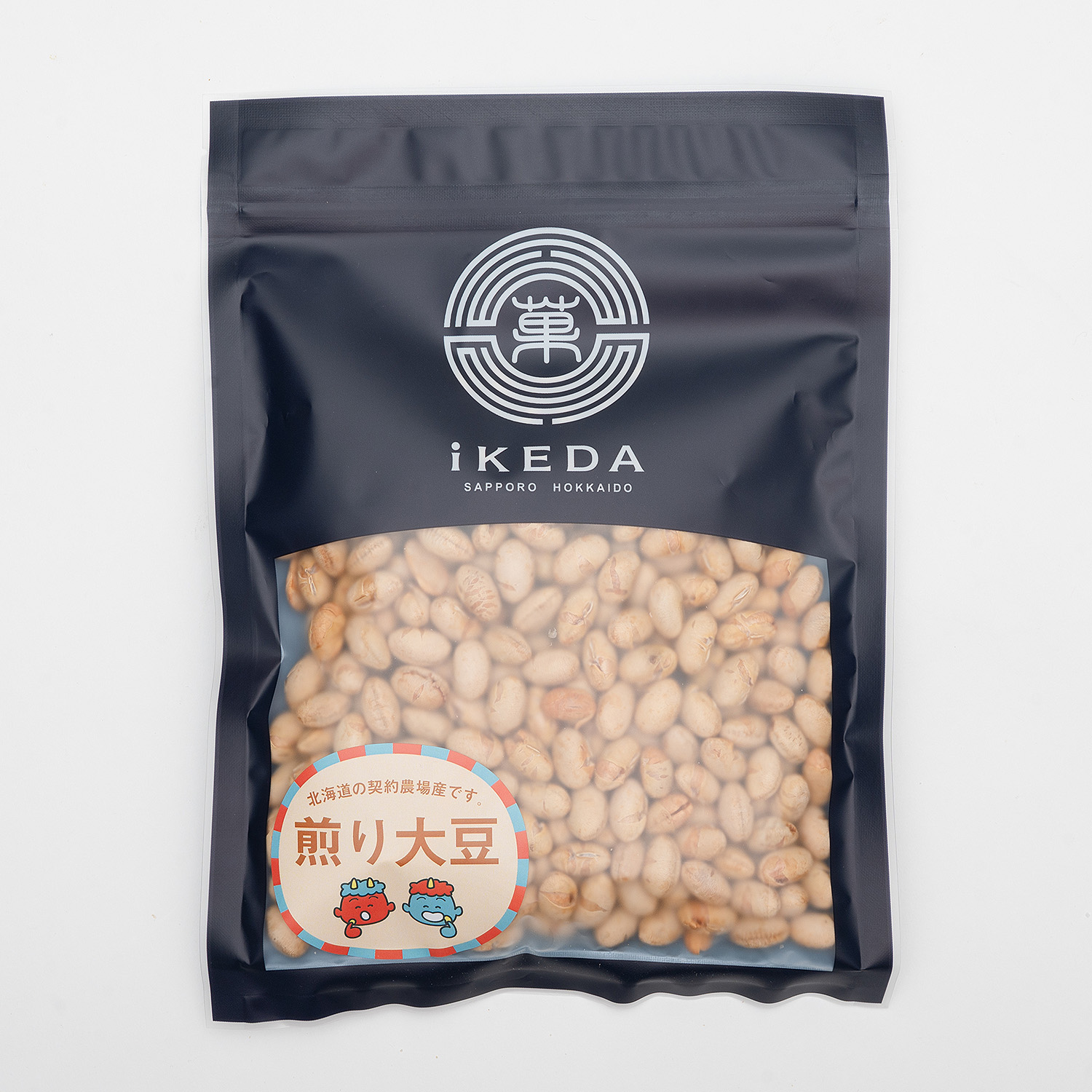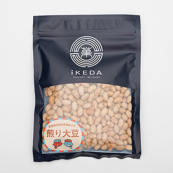 契約農場の道産大豆を、そのまま香ばしく煎ってパッケージングしました。
