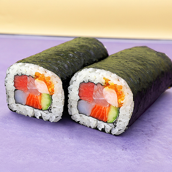 ●内容:本鮪中トロ、鯛、サーモン、海老、いか、とびっこ、きゅうり●サイズ:約 長さ18×直径5.5cm●商品に含まれるアレルギー特定原材料8品目:小麦、えび●アルコール使用:なし●消費期限:製造時間より10時間※画像はイメージです。※お受け取りの際は「ご注文確定メール」を当日プリントしてご持参いただくか、スマートフォンの受信画面をご提示ください。※お申し込み後のキャンセルやお受け取り日時の変更はご容赦ください。※お受け取りの際、店頭にてお並びいただく場合がございます。