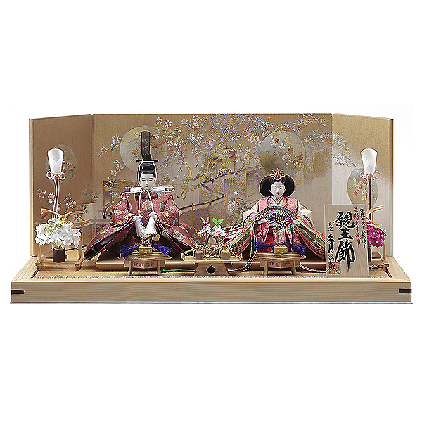 白木の平台に正絹有職文様衣裳が映えるコンパクト飾りです。>>東急百貨店のひな人形 商品一覧