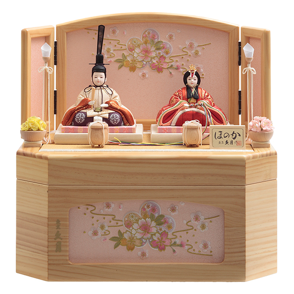 柔らかな色調のお雛様に、木目の収納箱をセット。均整のとれた優美で可愛らしい木目込み飾りです。>>東急百貨店のひな人形 商品一覧