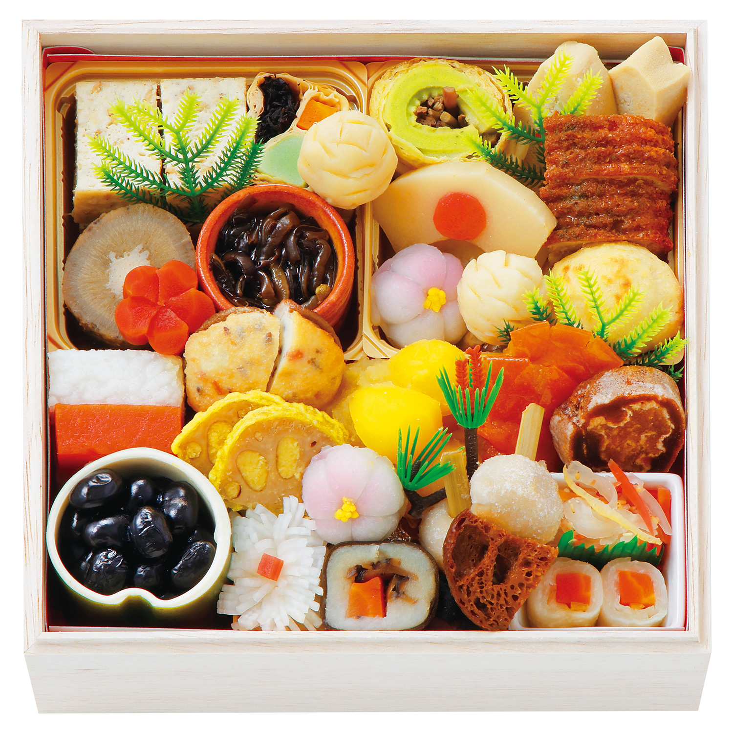 名刹・大徳寺の中に店を構える、精進鉄鉢料理の名店。精進料理の基本となる調理法で食材本来の味を引き出しました。薄味でありながら芯まで味わい深いおせちをお楽しみください。<内容>からし蓮根、菊花かぶら、金柑御所車、串さし六条麩と利休麩、栗きんとん、紅白道明寺粉寄せ、三色湯葉巻、百合根はさみ、ねじ梅人参、はさみ椎茸、木耳有馬煮、日の出筍、福豆ぶどう煮、宝来とうふ、射込堀川牛蒡、松笠くわい、山芋竜飛巻、湯葉蒲焼、蓬信田巻、利休とうふ、紅白なます、絹巻、梅餅、柿巻
