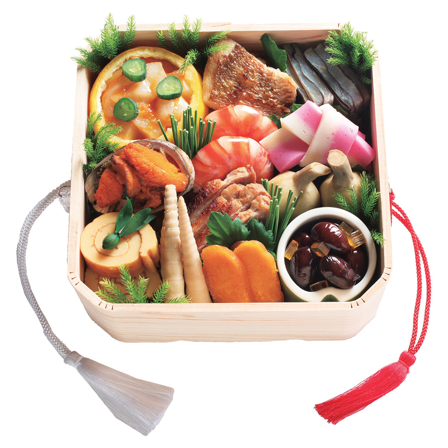 初代が裏千家の家元から懐石の心を伝授され、明治35年創業。裏千家の茶事を担う名店は、伝統に磨きをかけた料理、懐石の真髄を伝えます。<内容>いかうに和え胡瓜、合鴨ロース味噌漬け焼、車海老旨煮、あわび雲丹焼、平目求肥昆布押し、紅白結び蒲鉾、小鯛酒焼、伊達巻、くわい旨煮、黒豆煮・のし梅、五三竹旨煮、からすみ
