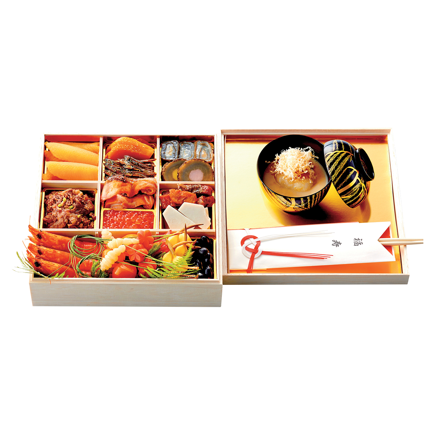 ●サイズ:24×24×7.8cm×1段、京風白味噌雑煮付/3人前●商品に含まれるアレルギー特定原材料8品目:えび、小麦●お届け日:12月31日(水)1日限り●お届け時間:12時~19時※お届け先は下記の地域に限らせていただきます。〈東京都〉全域(離島を除く)〈神奈川県〉全域〈千葉県〉千葉市、我孫子市、市川市、市原市、印西市、浦安市、柏市、鎌ヶ谷市、佐倉市、白井市、袖ヶ浦市、流山市、習志野市、野田市、船橋市、松戸市、八街市、八千代市、四街道市〈埼玉県〉さいたま市、朝霞市、入間市、川口市、川越市、越谷市、狭山市、志木市、草加市、所沢市、戸田市、新座市、富士見市、ふじみ野市、三郷市、八潮市、和光市、蕨市※お届け時間のご指定、ご進物としてのご用向き・二重包装は承れません。※内容が多少変更になる場合がございます。※商品の性質上、お取替え・キャンセル・ご返品はご容赦願います。※同じ商品でも別々に届く場合がございます。※京風白味噌雑煮は盛り付けイメージとなります。※器は商品に含まれておりません。>>2~3人用おせち 商品一覧>>和風おせち 商品一覧>>東急百貨店のおせち 2026