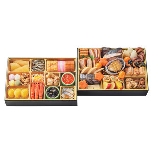 味付数の子、(鰹節フレッシュパック付き)、ひとくち大福(紅)、ひとくち大福(白)、ひとくち大福(ゆず)、ひとくち大福(よもぎ)、メープルくるみ甘露煮、栗きんとん(きんとん)、栗きんとん(栗甘露煮)、田作り、紅白なます(伊予柑入り)、焼海老、厚焼玉子、祝蒲鉾(紅白)、伊達巻、小鯛西京焼、丹波黒豆甘露煮(金箔)、味付いくら、こはだかぶら漬け