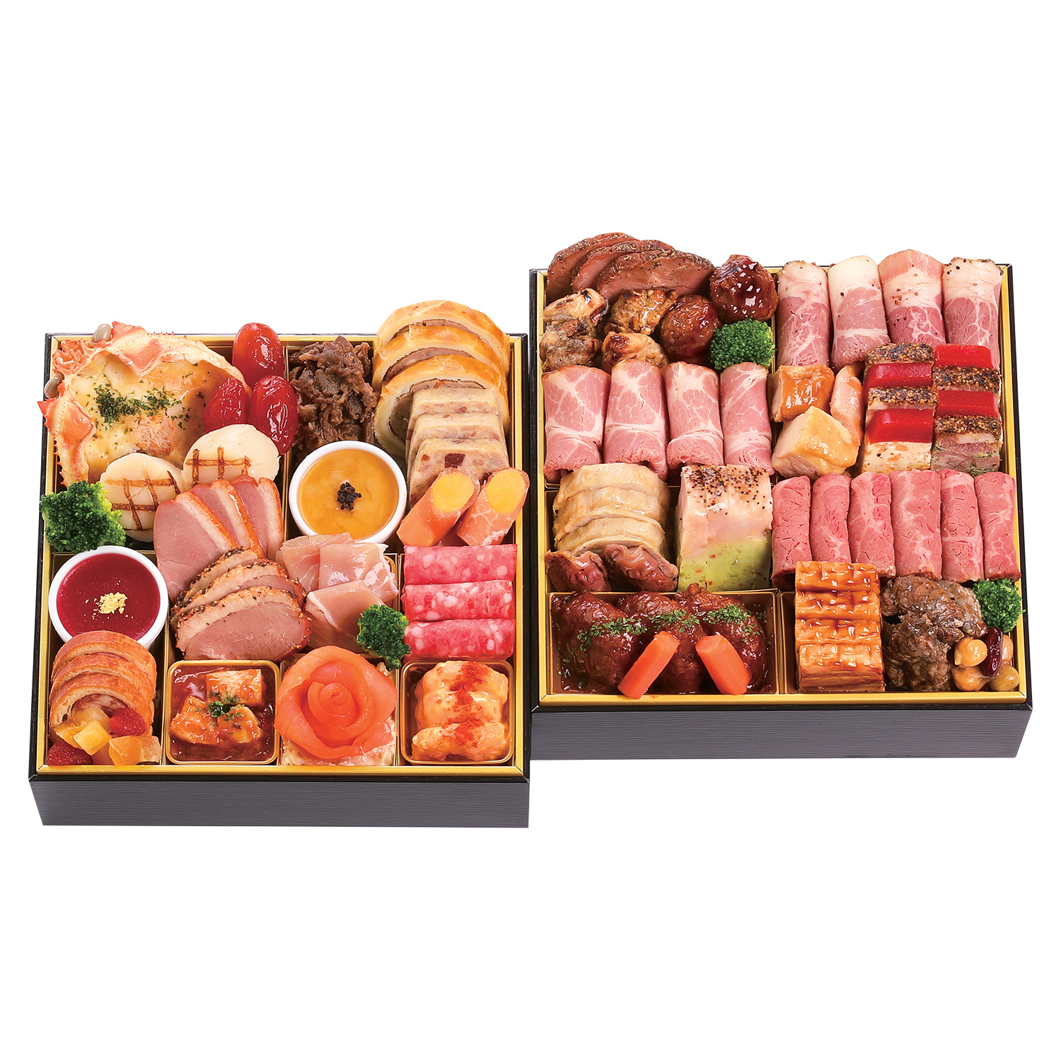 京町屋風の隠れ家で味わう鉄板焼が人気の〈京彩宴〉。お肉料理たっぷりでボリュームのあるおせちをご堪能ください。