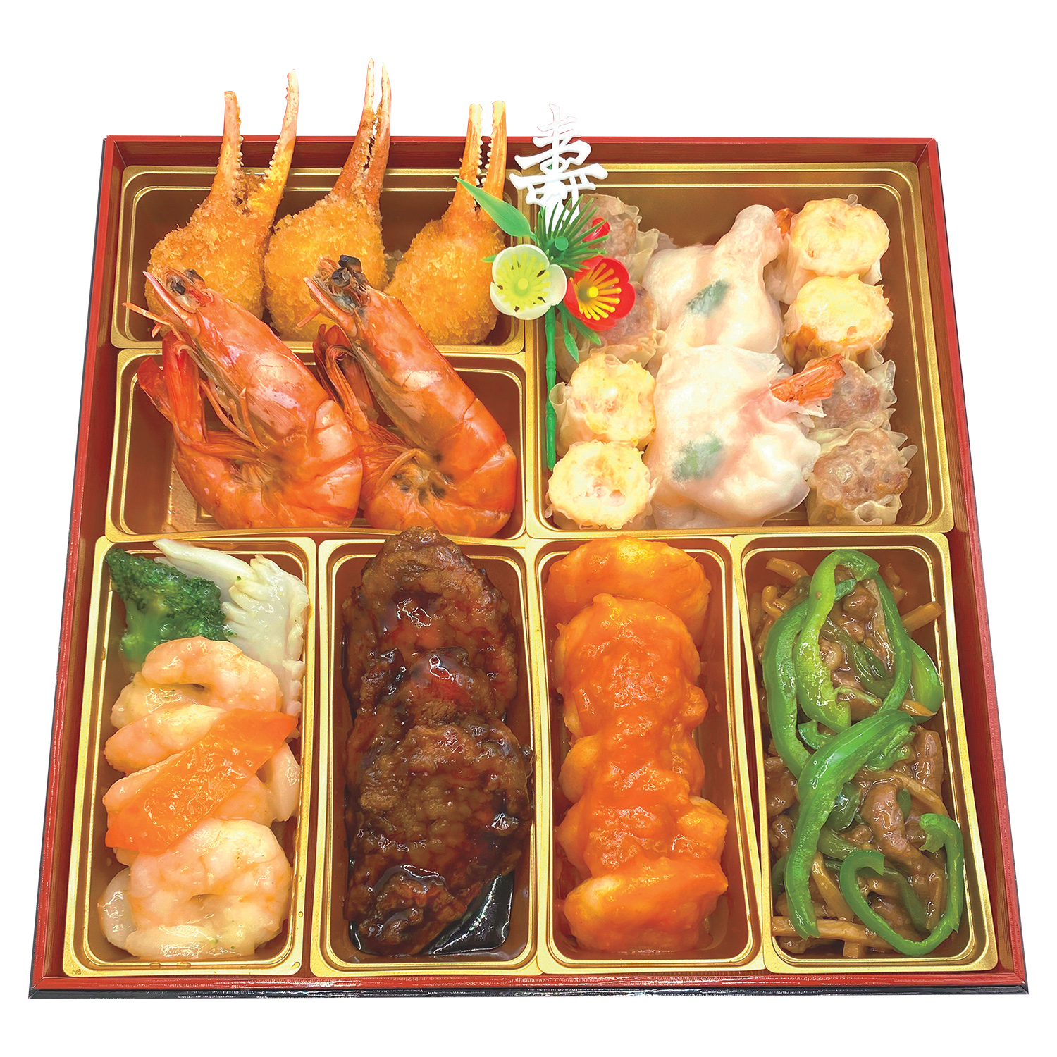 ご自宅で満喫できる中華料理を日々提供している中華惣菜専門店。ご家族で楽しめる献立で新年のお祝いを彩ります。<内容>海老のチリソース、牛肉とピーマンの細切り炒め、黒酢酢豚、海老とブロッコリーの塩炒め、カニ爪フライ、有頭海老の姿煮、姿蒸し海老焼売、桂林肉焼売、桂林海老焼売