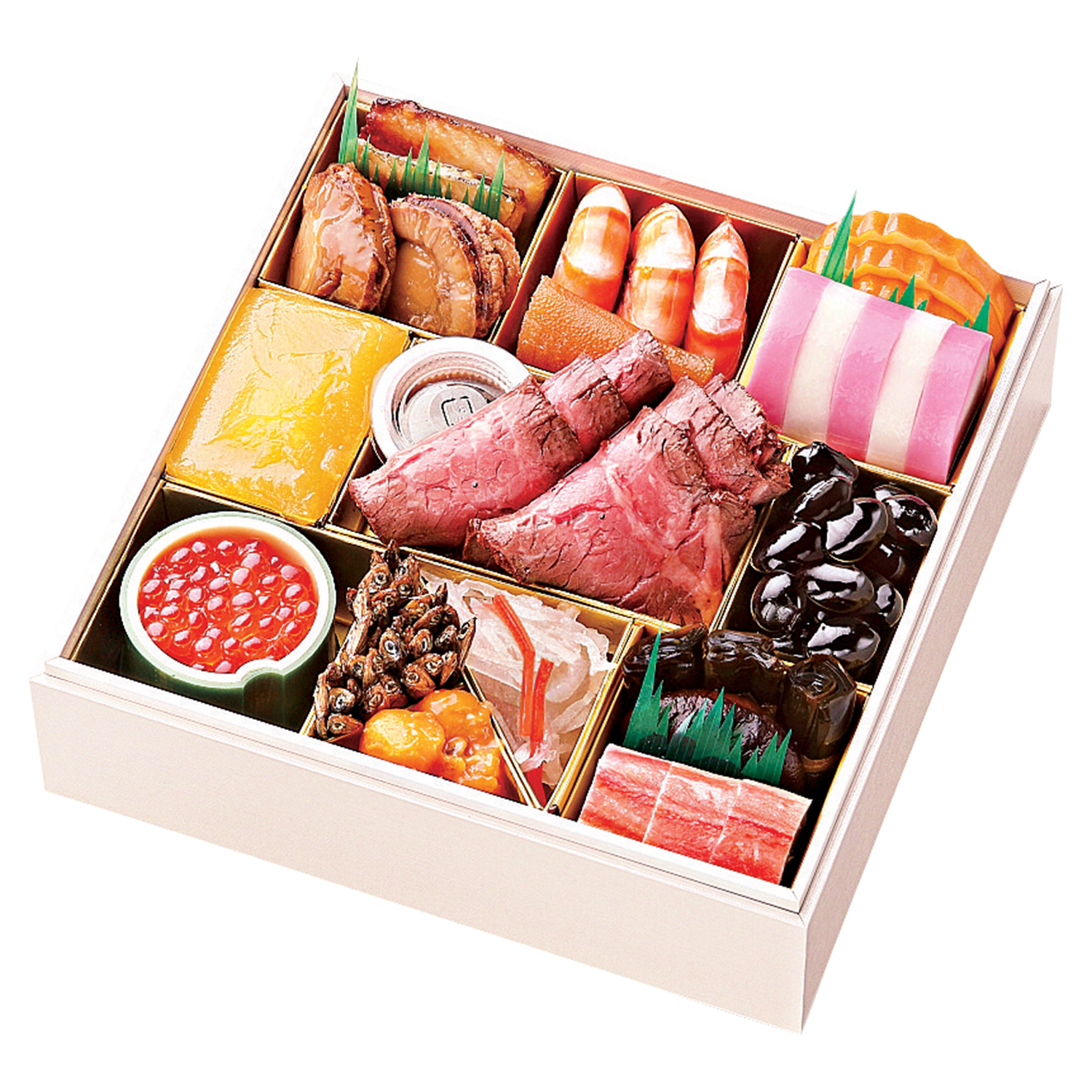 日本料理の正統を継ぐ老舗が趣向を凝らした美味。ふるさとへもお届けします。<内容>紅白小袖蒲鉾、伊達巻、海老芝煮、数の子鼈甲漬、黒豆、田作り、貝柱雲丹和え、紅白なます、栗きんとん、いくら醤油漬、ローストビーフ、タレ(ローストビーフソース)、蟹真丈、干椎茸甘露煮、一口昆布巻、鰈西京焼、帆立生姜煮