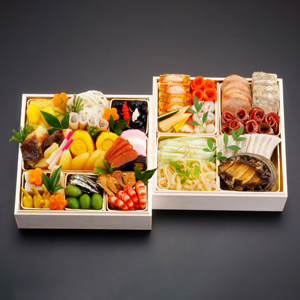 ◎ネット限定品<1段目>黒豆葡萄煮、紅白千代呂木、田作り照煮、唐寿身、若桃、栗金糖、面取り八つ頭、竹の子照煮、慈姑照煮、柚子伊達巻、紅白蒲鉾、鰊昆布巻、銀鱈西京焼、梅花人参、数の子漬、車海老艶煮、松茸土佐煮、亀甲椎茸、酢蓮根、笹漬鯛、菊花蕪、細矢生姜<2段目>鮑の醤油煮、蒸し鶏、くらげの冷製、白菜の甘酢漬け、フォアグラ入りテリーヌ、若鶏のテリーヌ、スモークビーフ、冷製オマール海老、紅白鮮魚のスモーク、彩り野菜のマリネ