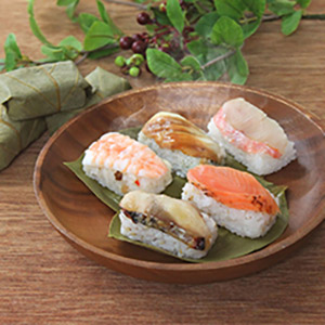 ◎ネット限定品<内容>柿の葉寿司(焼さば)、柿の葉寿司(炙りさけ)、柿の葉寿司(金目鯛)、柿の葉寿司(穴子)、柿の葉寿司(えび)