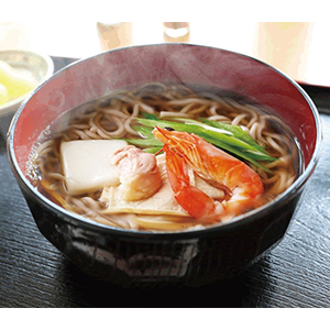 ◎ネット限定品<内容>特製そばだし、そば、海老、鶏肉、湯葉、九条ねぎ、もち、七味