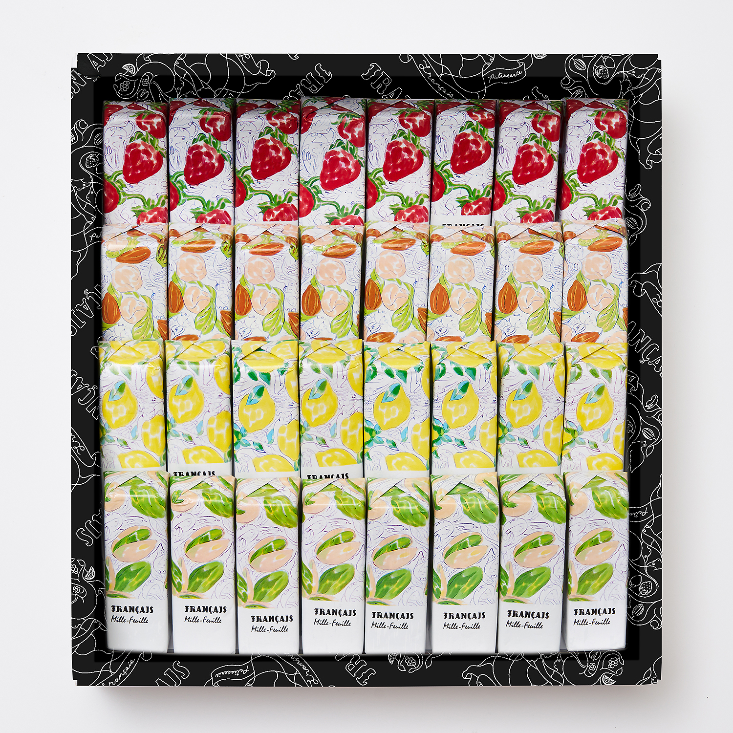 ●内容:ミルフィユ(いちご、れもん、ピスタチオ、ジャンドゥーヤ)各8個●箱サイズ:22.7×21.3×5.8cm●商品に含まれるアレルギー特定原材料8品目:小麦、乳成分●アルコール使用:あり●賞味期限:80日>>フランセ 商品一覧