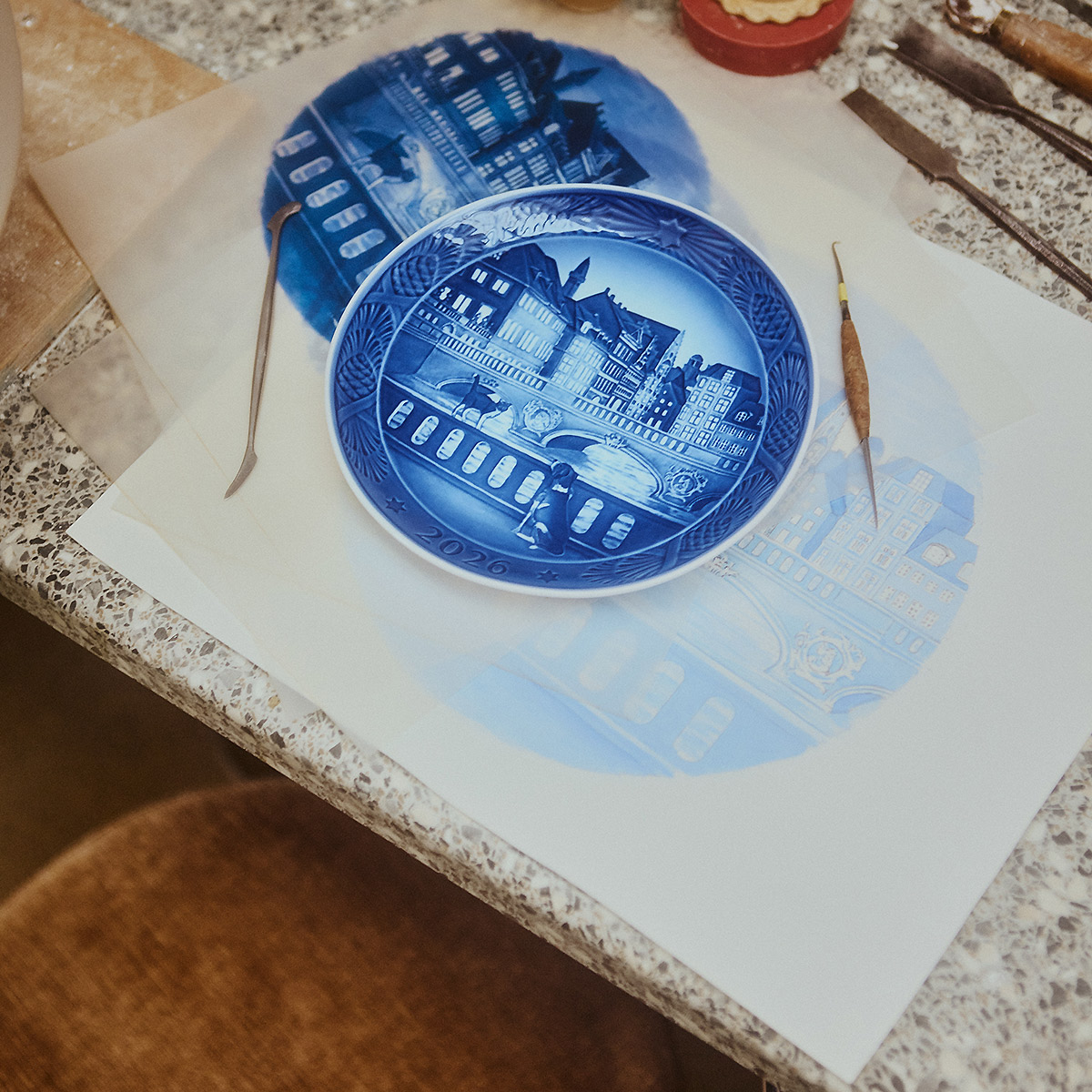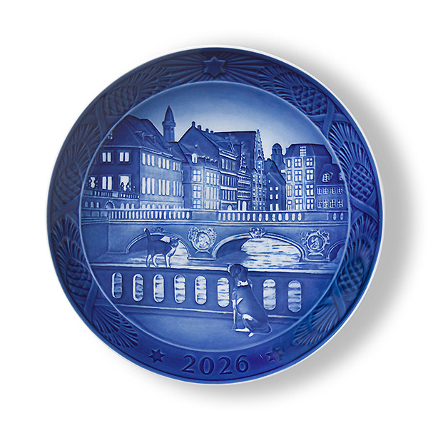 2026年のイヤープレートには、コペンハーゲン市内にかかるマーブルブリッジが描かれています。1744年にクリチャンボー城の一部として建てられたロココ調の美しい橋を猫と犬が静かに見つめています。デンマークの建築美とクリスマスの伝統をハンドスプレーで丁寧に描いたイヤープレートはホリデーシーズンに歴史とぬくもりをもたらすタイムレスなコレクターズアイテムです。今年もアラン ターキルセンによるデザインです。