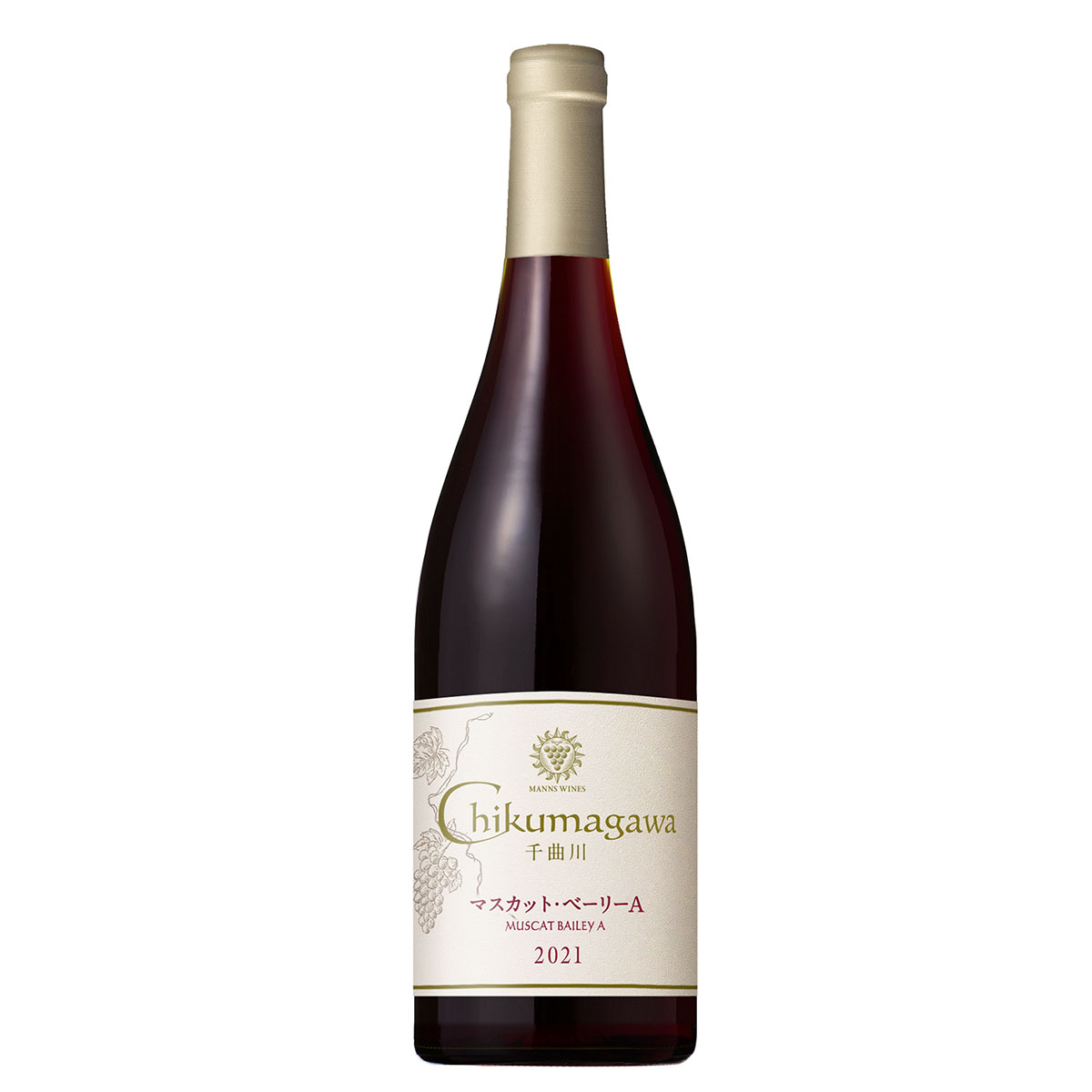 マンズワインは、日本の中でも、日照量、土壌の性質、地形、降雨量など、ぶどう作りに求められる条件を徹底的に調査し、ぶどう栽培適地として、山梨県と長野県を選び、この日本の2大銘醸地にワイナリーを構えています。先人たちが切り拓いた地で、歴代の栽培担当者や研究開発者たちが、果敢な挑戦とたゆみない努力を重ね、それぞれの土地の個性を反映したぶどう作り、ワイン造りを目指しています。長野県小諸市西原地区の自社有機栽培管理畑のマスカット・ベーリーAを使用しています。(マンズレインカットを使用した垣根栽培)手作業で丁寧に収穫・選果を行い、梗を取り除かず房ごと仕込んで発酵させ(全房発酵)、樽で約11か月間育成しました。国の定める有機JASに適合した方法で、ぶどう栽培からワイン醸造まで一貫した管理を行っています。2021年は秋に涼しく晴れた日が続いたため、ゆっくりとぶどうの成熟が進み、糖度・酸度共にバランスの良いマスカット・ベーリーAを収穫することが出来ました。外観は輝きのある明るいルビー色。ワインを注ぐとイチゴやラズベリーなどの赤い果実、バラの花束のような華やかな香りがグラスいっぱいに広がります。アタックは優しくスムーズで豊かな果実味と綺麗な酸味、味わいを引き締めるタンニンがバランスよくまとまっています。余韻に残るたっぷりの果実感に思わず笑顔がこぼれるようなワインです。