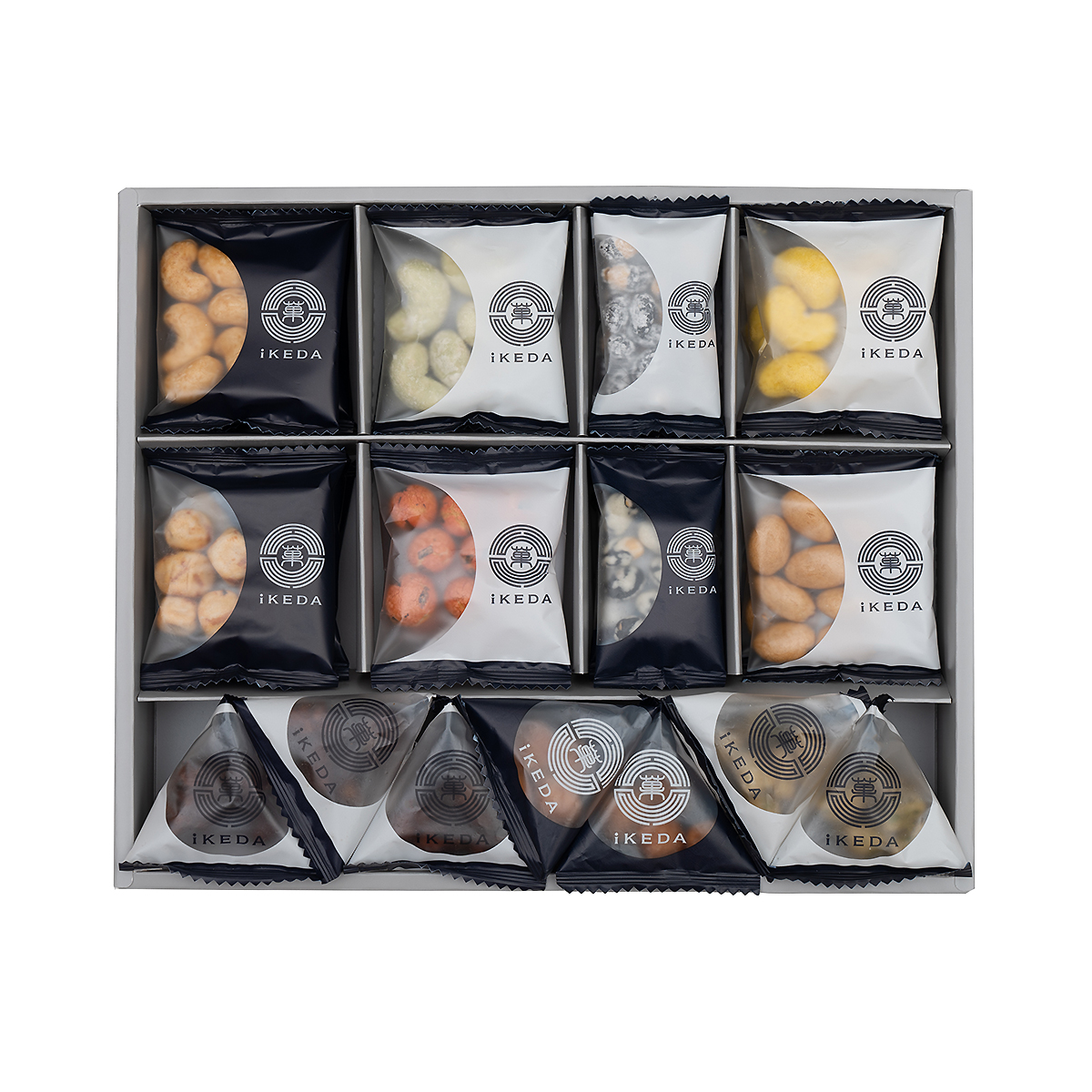 食べきりサイズの個包装セット。「黒糖はちみつかりんとう」をはじめ、ひとくちサイズで食べやすい定番かりんとうと、人気No.1のしょうゆ味「焼カシュー」、ツンとくる辛さがクセになる「わさびカシュー」、北海道産とうもろこしパウダーをまぶした「とうきびカシュー」など人気の創作豆菓子を詰め合わせました。お世話になっている方や大切な方への贈り物におすすめです。
