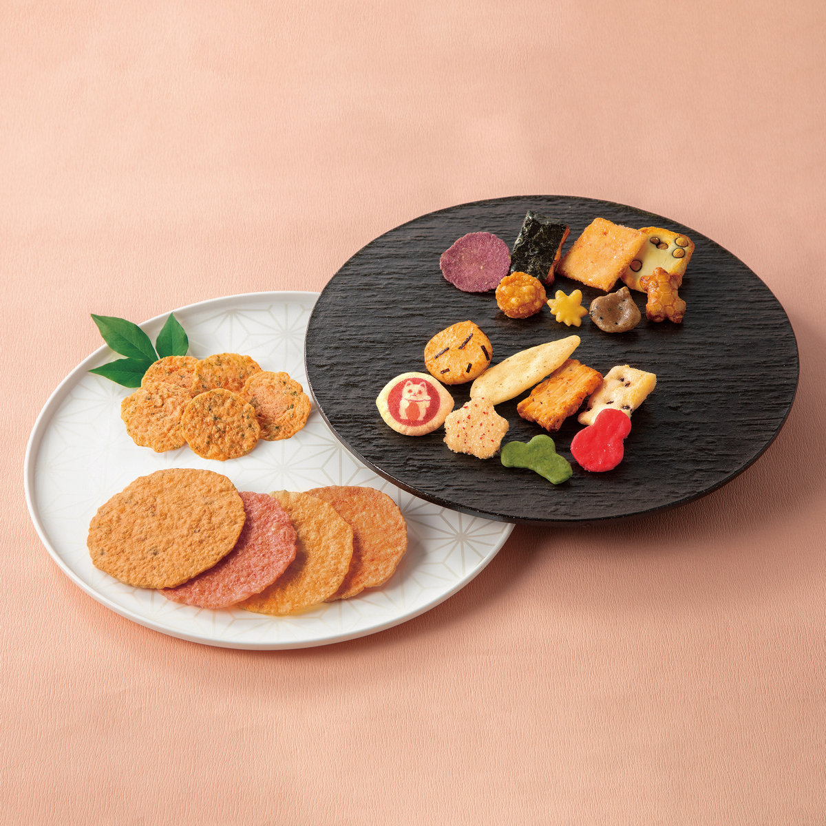 素材の旨みをいかした「海匠焼海老、帆立」に冬の味覚「かに、のどぐろ」、「ひとくち海老せんべい」、季節の彩りや風景をうつした「遊山楽」、招き猫や松竹梅などをあしらった縁起の良い「ふきよせ福あかり」。海鮮せんべいと国産米100%のひと口米菓のお詰合せです。