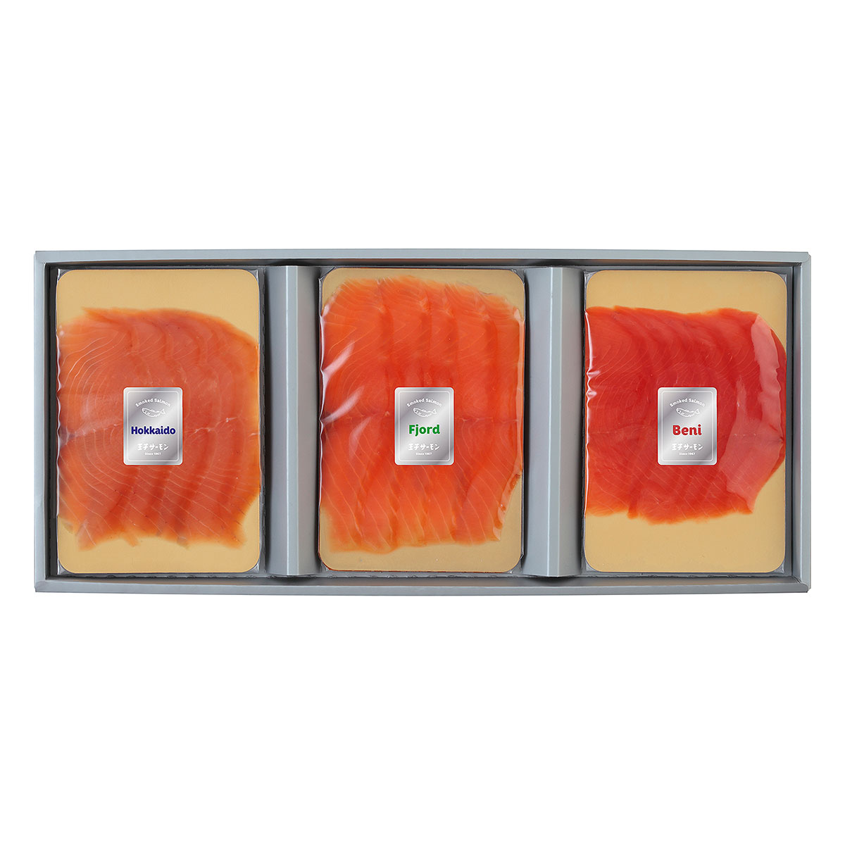 王子サーモン自慢のスモークトラウトサーモンに紅鮭・秋鮭を加えた3種サーモンの食べ比べセットになっております。より保管しやすく便利にお召し上がりいただけるよう小分けタイプ。
