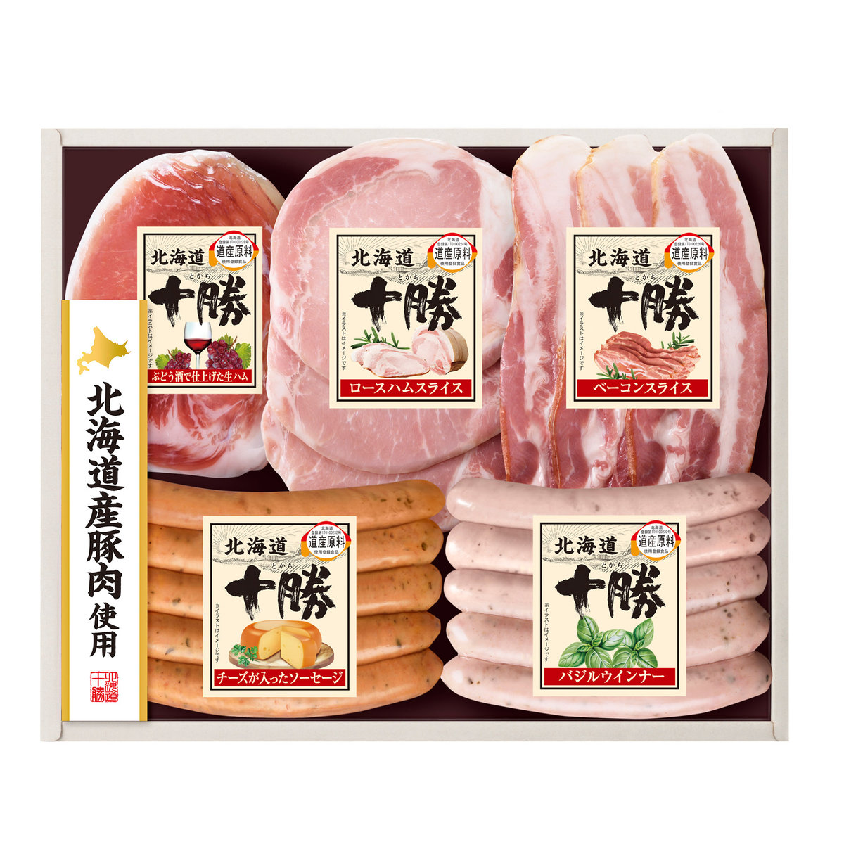 ●内容:チーズが入ったソーセージ105g、バジルウインナー105g、ぶどう酒で仕上げた生ハム40g、ロースハム60g、ベーコン70g●箱サイズ:22.7×27.4×7.1cm●商品に含まれるアレルギー特定原材料8品目:乳成分●アルコール使用:なし●賞味期限:冷蔵35日>>さっぽろ店のお歳暮 ハム・ソーセージ・精肉 商品一覧>>さっぽろ店のお歳暮 2025(北海道厳選ギフト) ページ