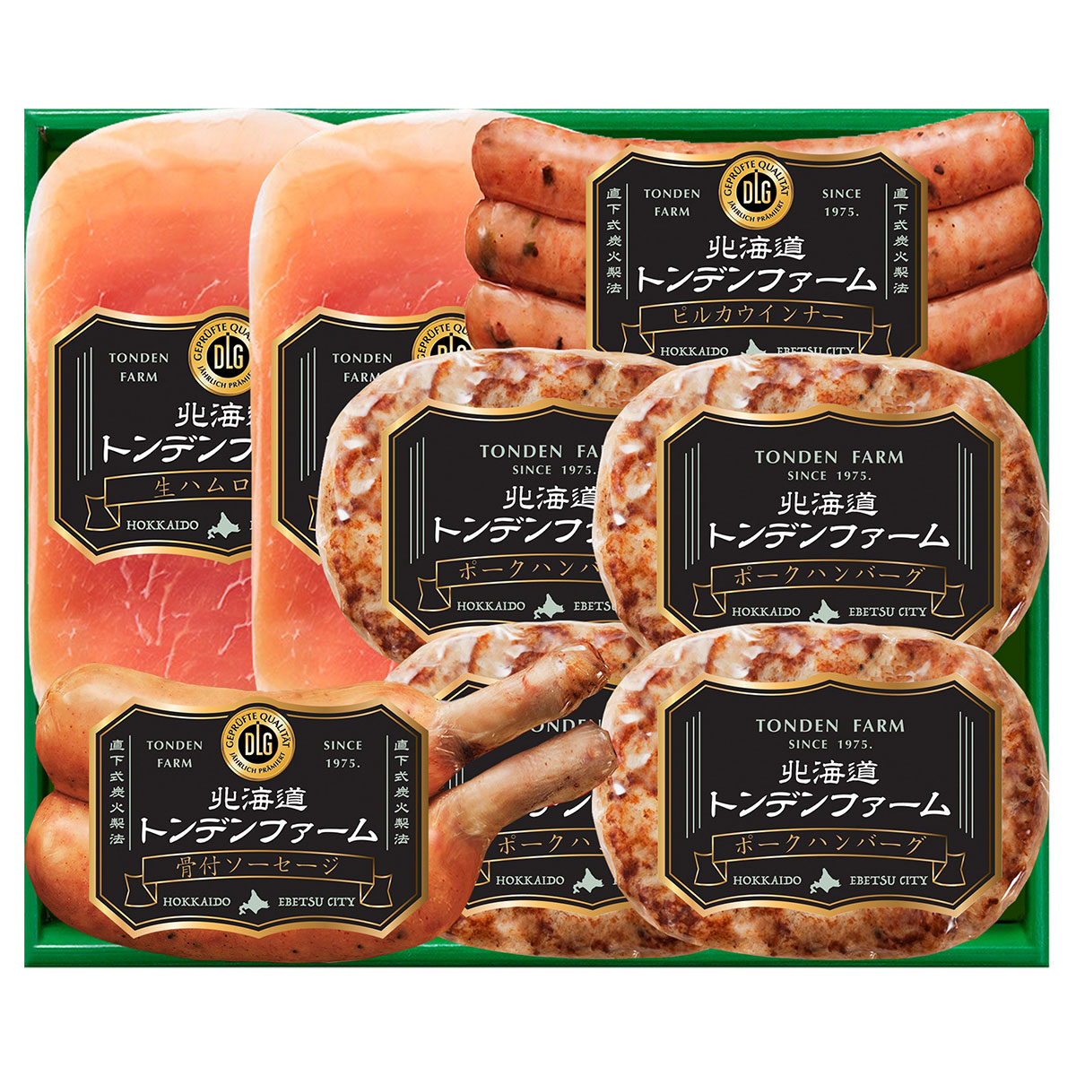 余分な水分や脂を落として旨みだけを残す、≪トンデンファーム≫伝統の直下式炭火製法で仕上げた美味。職人技が守るハンバーグとウインナー・生ハムなどのセットです。