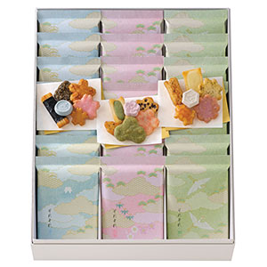 銀座で生まれ育った菓子舗が贈る味も形も多彩なおかき。素材はもちろん装いの細部までこだわりました。