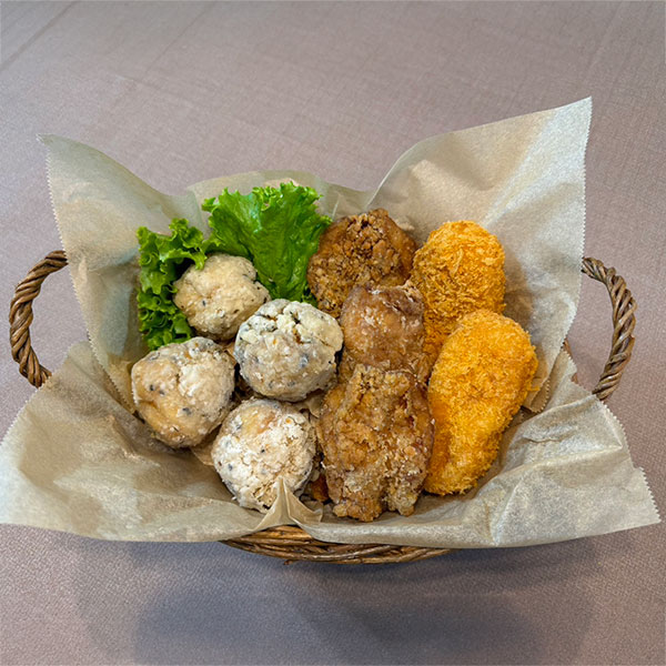 ●内容:塩まるから揚げ×4個、正田の焦がし醤油漬けから揚げ×3個、とろけるかにクリームコロッケ×2個