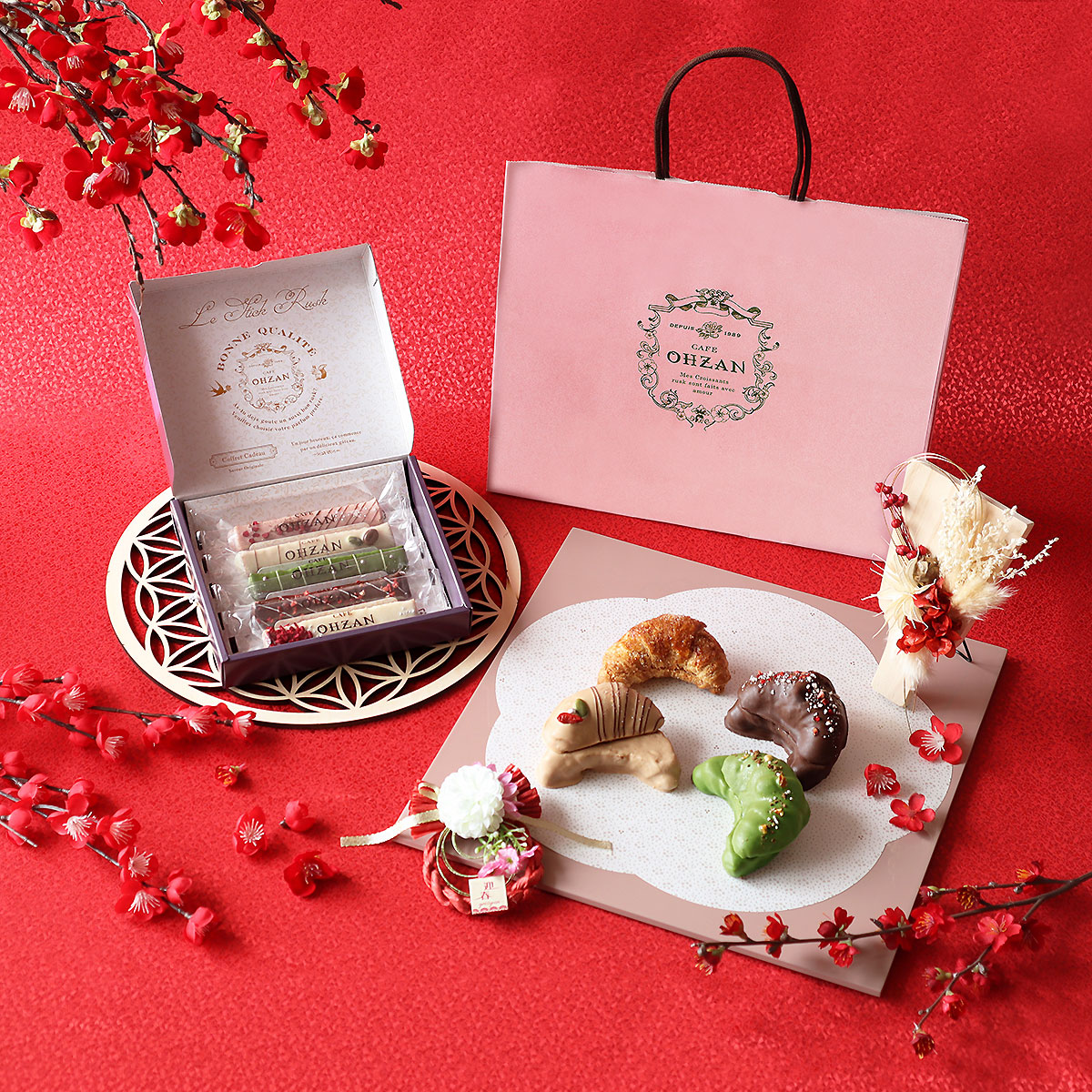 年に1回のお楽しみ福袋人気が高いスティックラスク5本入にクロワッサンラスクが4個!!中には通年販売していない「抹茶チョコレート」、「きなこチョコレート」が入っています!普段ohzanを購入してくださる方も、初めてご購入くださる方も、ohzanのおつくりするチョコレートとサクサク食感の絶妙なハーモニーをこの機会に是非お楽しみください。