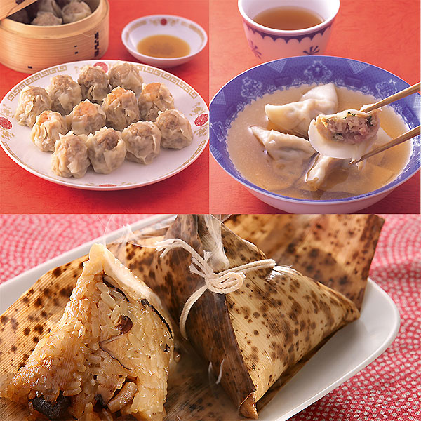3種類のシューマイ、水ギョーザ、ゴロっと角煮の入った中華ちまきの3種類の人気の商品をお買い得なセットでご用意いたしました。