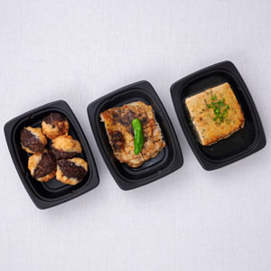 《和食屋の惣菜えん》の人気のお惣菜、「海老しんじょう揚げ」「鶏の黒胡椒七味焼き」「豆腐と山芋のハンバーグ」の3種を詰め合わせたお得な福袋です。