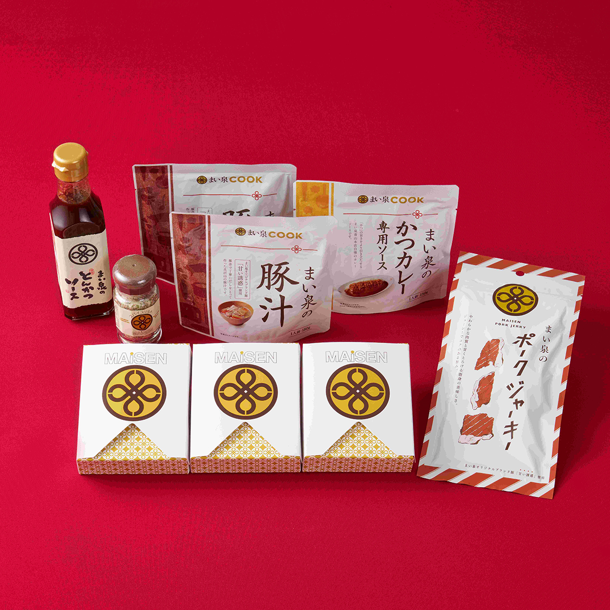 看板商品のヒレかつサンドをはじめ豚汁やポークジャーキーなど、まい泉の人気商品の詰め合わせを特別価格でご用意しました。