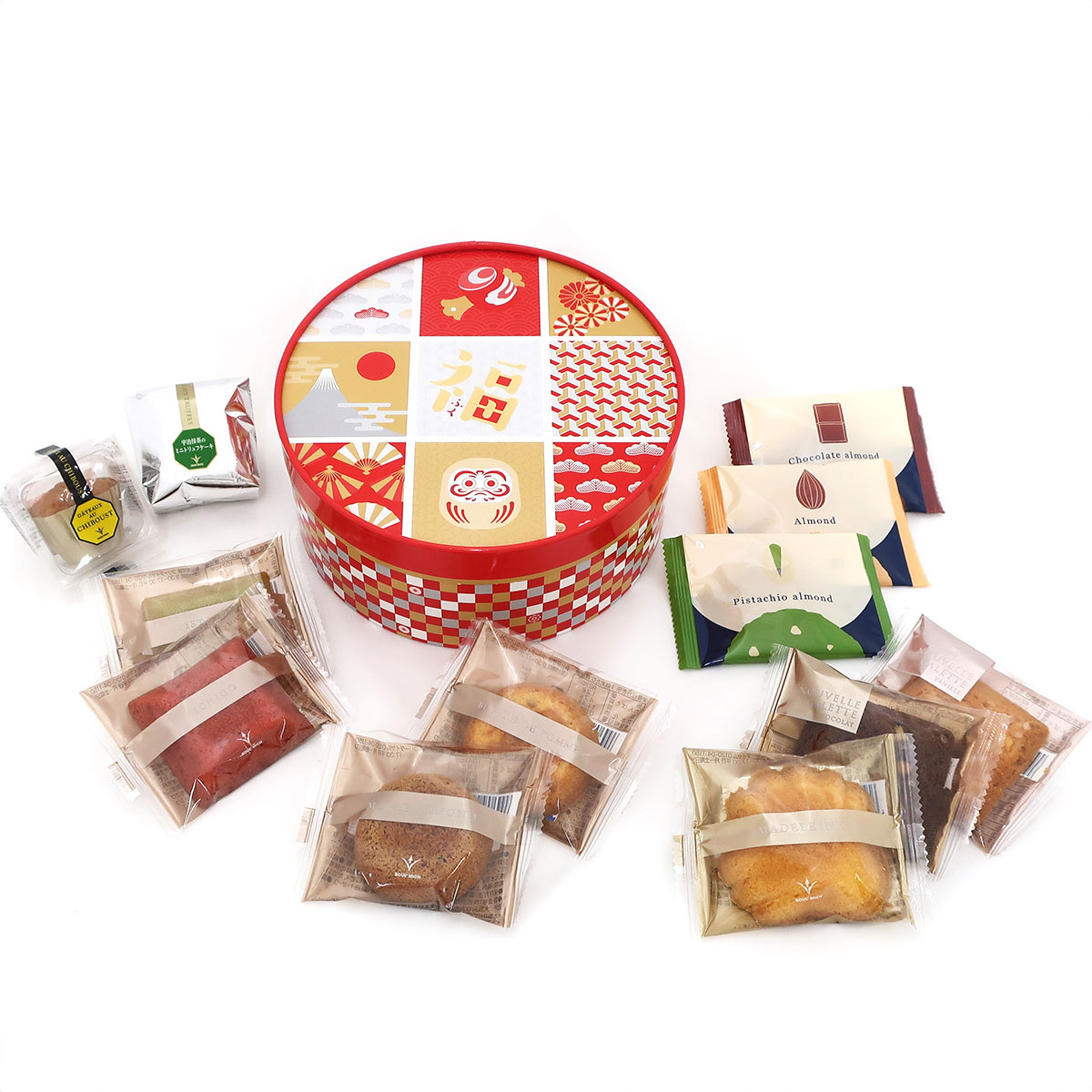 ●内容:宇治抹茶のミニトリュフケーキ、ガトー・シブーストミニ、マドレーヌ、ヌーヴェルガレット(バニラ、チョコ)、いちごバターケーキ、フィナンシェ・ピスタチオ、メープルアーモンドケーキ、りんごバターケーキ、ディアマンド(アーモンド、チョコアーモンド、ピスタチオアーモンド)×各1