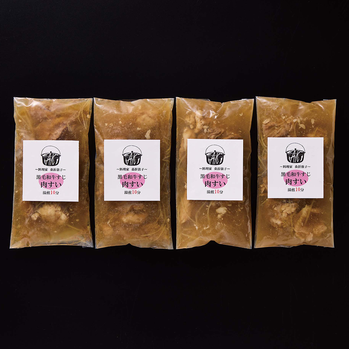 ●内容:黒毛和牛すじの肉すい170g×4●箱サイズ:265×185×45mm●商品に含まれるアレルギー特定原材料8品目:小麦●アルコール使用:なし●賞味期限:冷凍90日※お届け日、お届け時間のご指定は承れません。※ご注文からお届けまで10日前後いただいております。>>全国うまいもの巡り 商品一覧