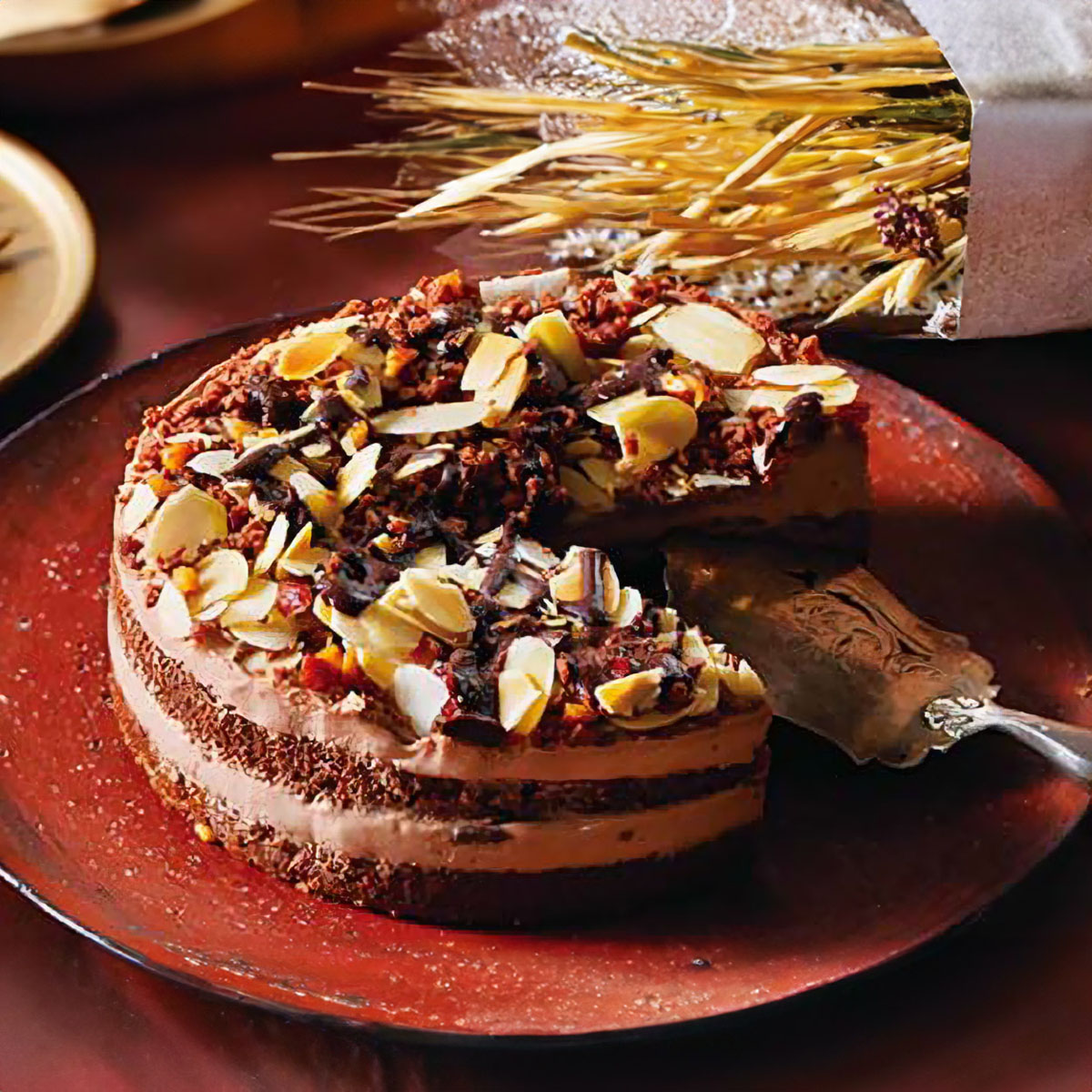 トッピングのパリパリとしたチョコとザクザクとしたナッツの楽しい食感が幅広い年代に人気のチョコレートケーキです。チョコホイップとチョコスポンジを重ねた上品な甘さは、ついもうひと口と食べすすめたくなる味わいです。ベルギーチョコレート使用。