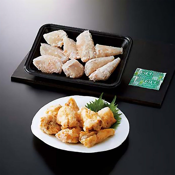 揚げたてをお楽しみいただけるよう、しろさばふぐのぶつ切りに唐揚げ粉を付けてお届けします。ふくの食感と旨味をさっぱりとしたかぼす果汁をかけてお楽しみください。