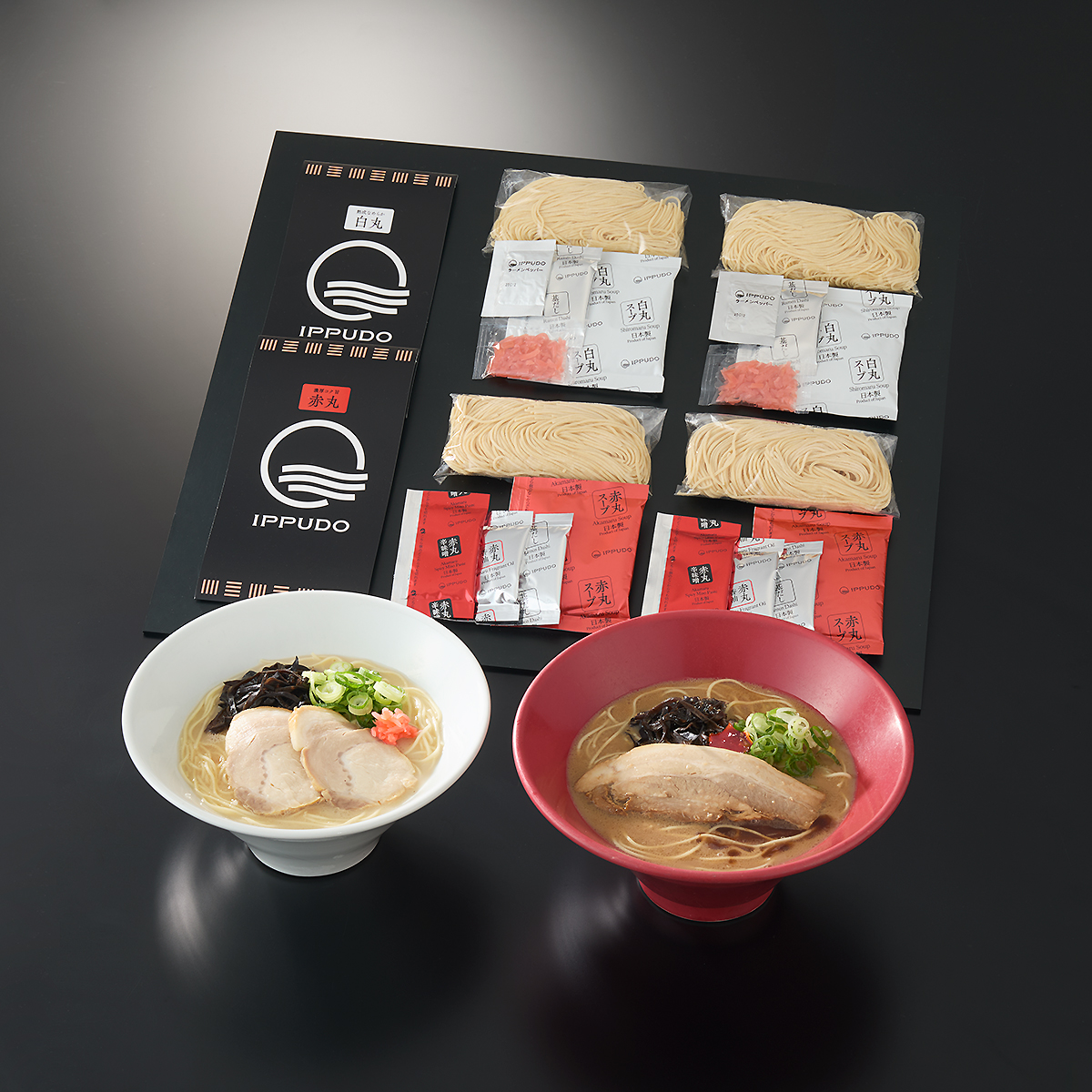 創業当時の味を今に引き継ぐ、一風堂のとんこつラーメンの本流である「原点の一杯」白丸と醤油のコクに、ガーリックが効いた香油、特製の辛味噌。最後の一滴までスープの味わいと深みを楽しめる「革新の一杯」赤丸を詰め合わせました。一風堂のお店の味をお楽しみ下さい。※画像はイメージです。
