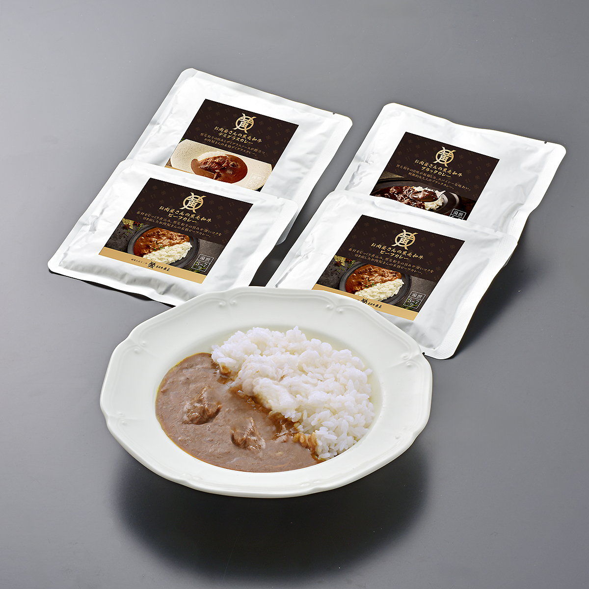 ●内容:黒毛和牛ビーフカレー150g×2、黒毛和牛デミグラスカレー・黒毛和牛ブラックカレー 各150g 計4《加工地:佐賀県》●商品に含まれるアレルギー特定原材料8品目:小麦、乳成分、落花生●アルコール使用:あり●賞味期限:常温730日※お届け日、お届け時間のご指定は承れません。※ご注文からお届けまで10日前後いただいております。>>全国うまいもの巡り 商品一覧