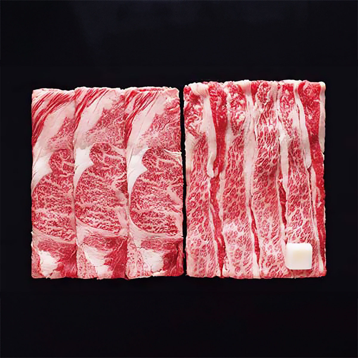 月間出荷数わずか50頭弱のプレミアムブレンデットドメーヌ牛「蔵王牛」の肩ロース肉とバラ肉をすき焼で、それぞれの味わいをご堪能ください。